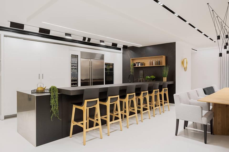 מטבח מעוצב ומאובזר במוצרי חשמל מובחרים, ריהוט מלא בחדרים ובסלון, וילונות חשמליים, תאורה יוקרתית וארונות בנגרות אישית.