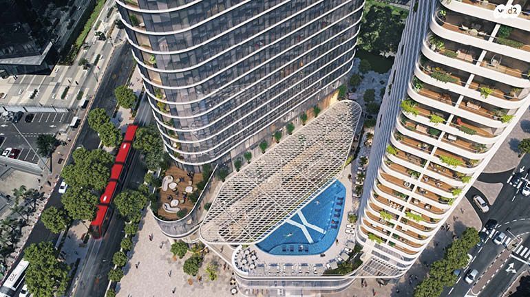 פרוייקט יוקרתי הכולל בריכה, לאונג’, שמירה 24/7.